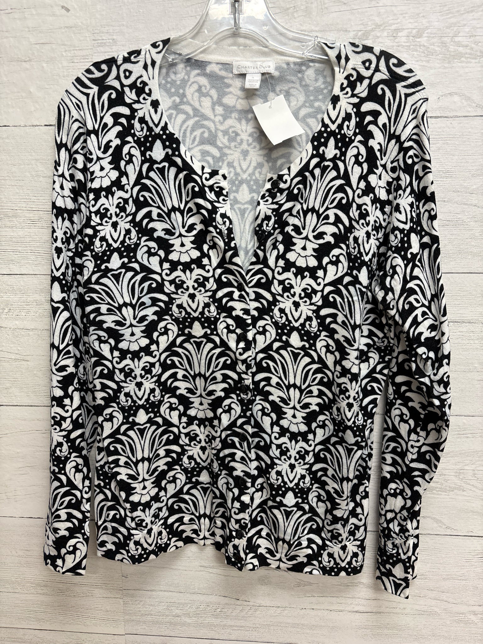 Size L Charter Club Black/White Womens Sweater