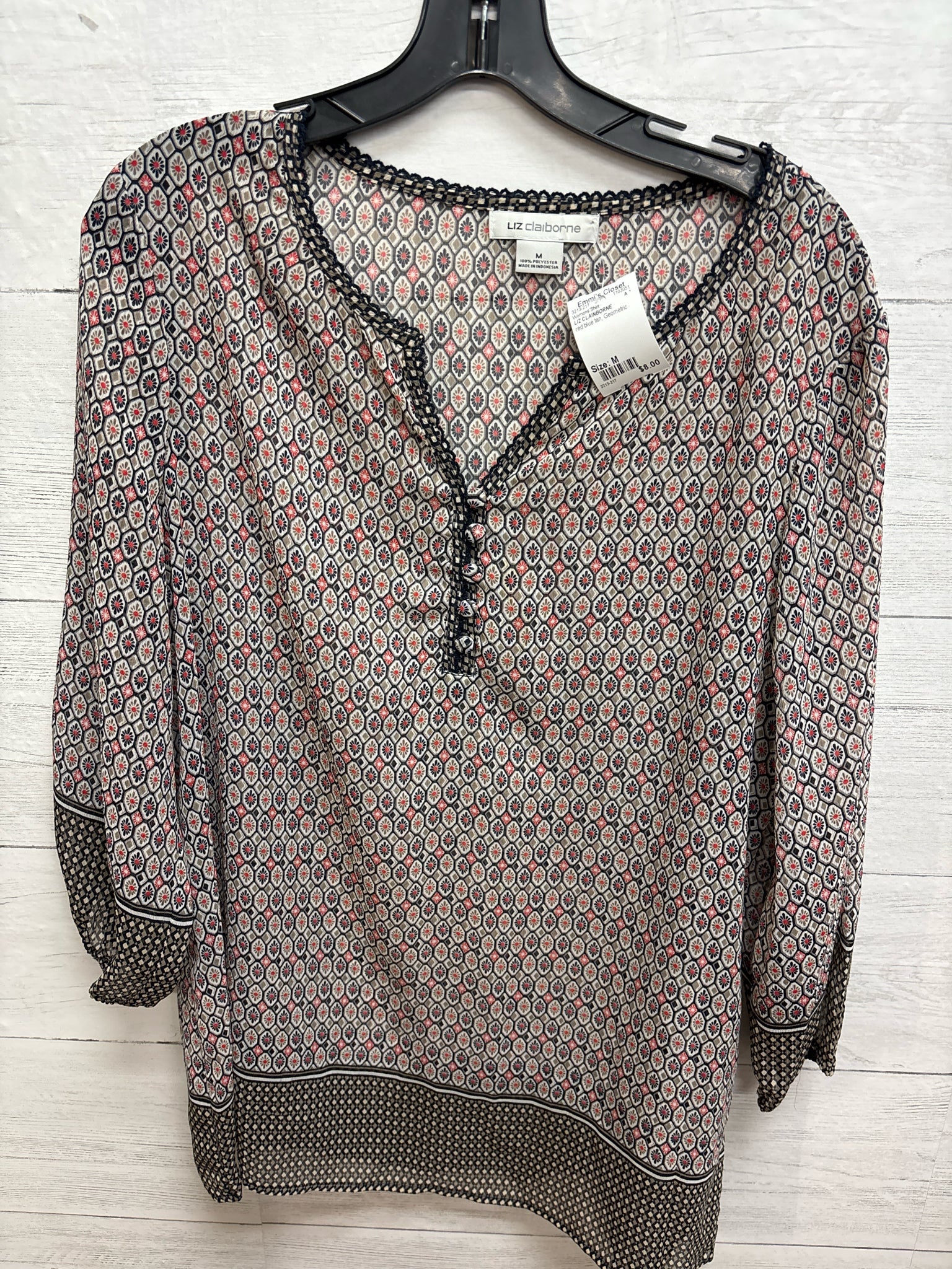 Size M LIZ CLAINBORNE red blue tan Womens Shirt